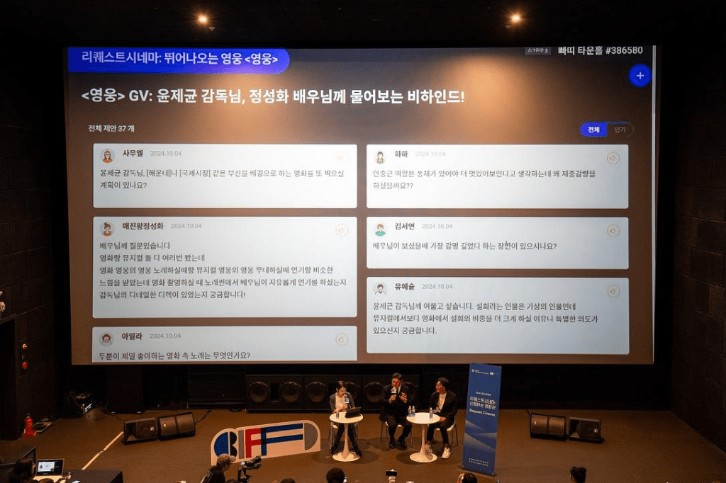 영화제는 단순한 영화 상영을 넘어 다양한 이벤트를 통해 관객과의 소통을 강화했는데요. 약 30여 개의 프로그램별로 빠띠 타운홀을 활용해 감독, 배우에게 질문을 남기거나, 만족도 조사등을 진행했습니다.